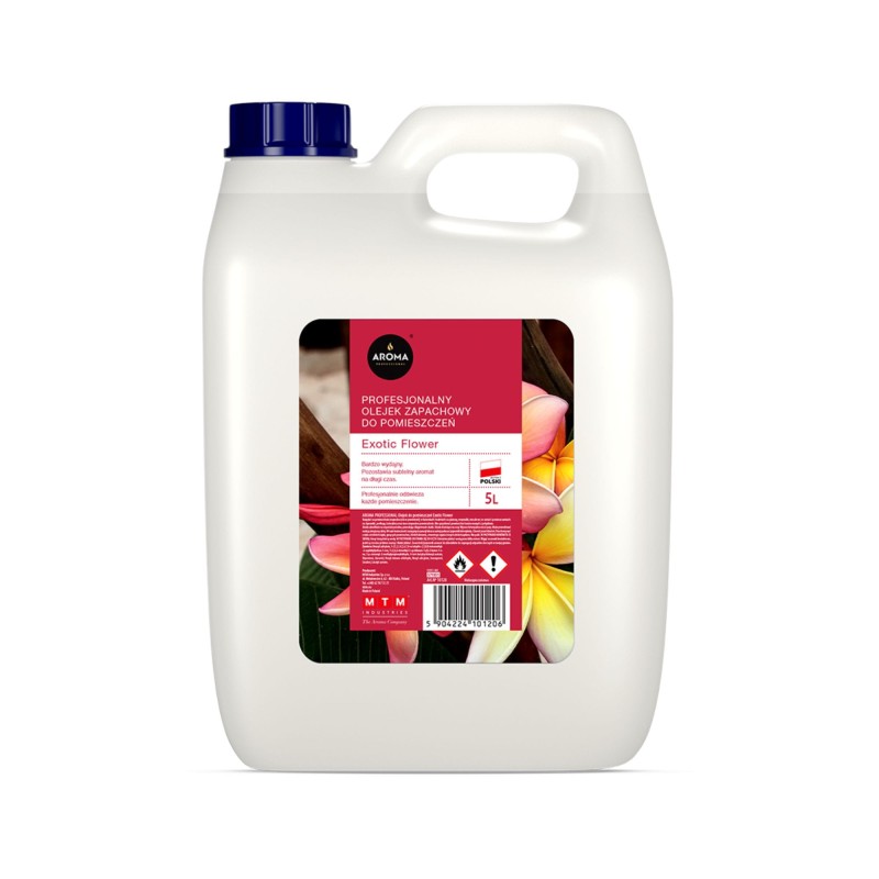 Wybierz Aroma Exotic Flower 5 L, jeśli potrzebujesz profesjonalnego i wydajnego olejku zapachowego, który wprowadzi przyjemną atmosferę egzotycznych kwiatów do każdego pomieszczenia.
