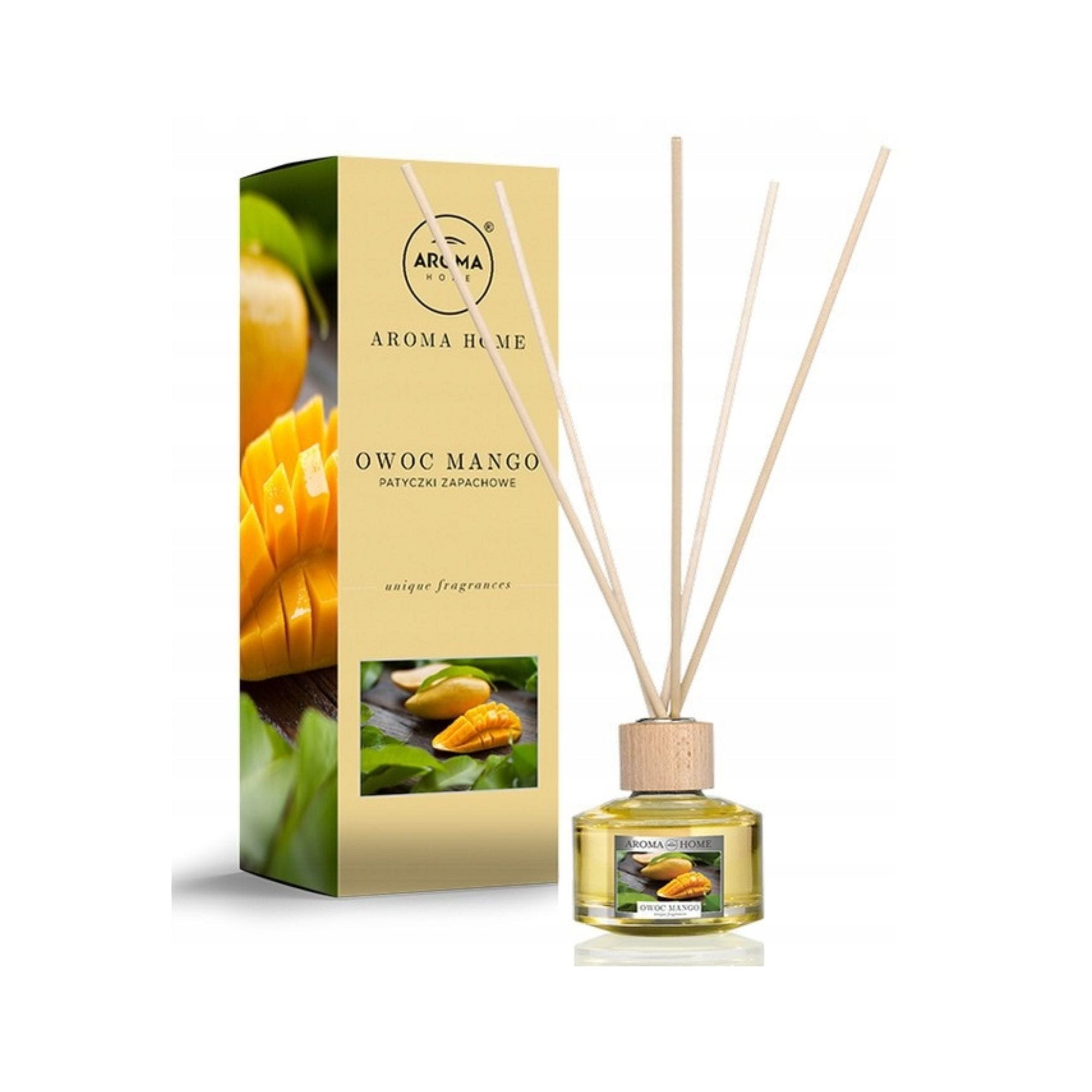 Aroma Home Mango to patyczki zapachowe o pojemności 50 ml, które wprowadzają do wnętrz egzotyczny, owocowy aromat mango. Produkt skutecznie neutralizuje nieprzyjemne zapachy, tworząc radosną i energetyzującą atmosferę w pomieszczeniach.
