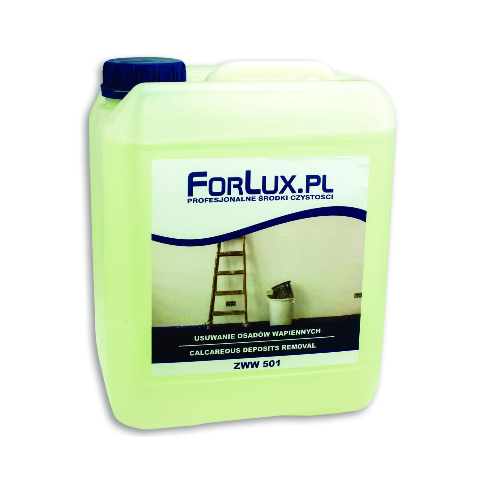 FORLUX ZWW 501 to profesjonalny preparat przeznaczony do skutecznego usuwania osadów wapiennych, kamienia kotłowego oraz zabrudzeń pobudowlanych z powierzchni odpornych na działanie kwasów. Produkt intensywnie działa na pozostałości zapraw, tynku, cementu i innych trudnych do usunięcia zanieczyszczeń, przywracając czystość i estetyczny wygląd czyszczonych powierzchni.