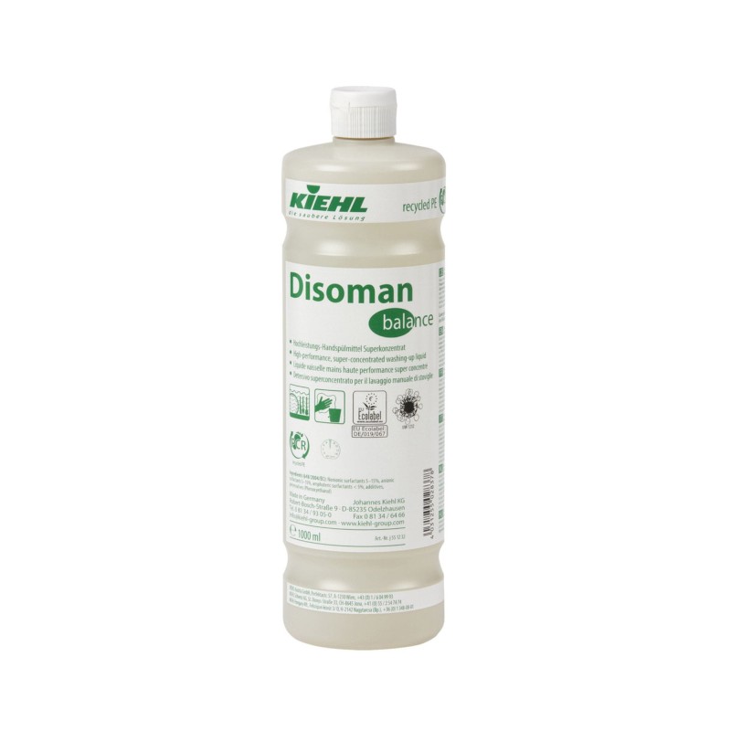 Wybierz KIEHL Disoman 1 L, jeśli potrzebujesz neutralnego, bezpiecznego i skutecznego płynu do ręcznego mycia naczyń, który zapewnia czystość, higienę i ochronę naczyń oraz skóry rąk.