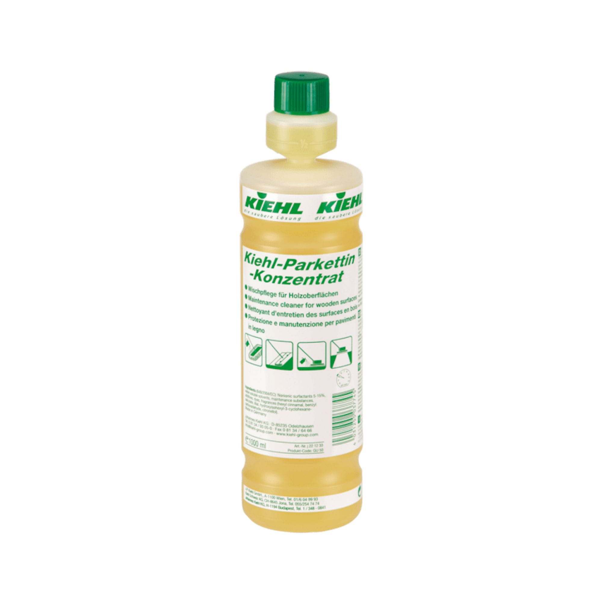 KIEHL Parkettin-Konzentrat 1 L to profesjonalny koncentrat do mycia i pielęgnacji podłóg drewnianych oraz laminowanych. Nie zawiera mydła ani wosku, dzięki czemu zapewnia doskonałe czyszczenie bez pozostawiania smug. Produkt chroni materiał, odświeża kolory i nadaje przyjemny zapach pomieszczeniu. Preparat certyfikowany Europejskim Znakiem Ekologicznym.