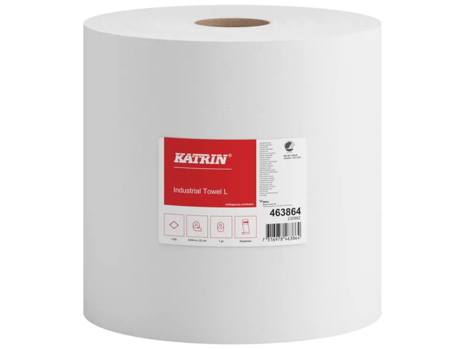 W środowisku przemysłowym Katrin Basic L 1200 doskonale sprawdza się do wycierania rąk, narzędzi i powierzchni roboczych. Dzięki dużej chłonności i długości rolki znacząco redukuje częstotliwość wymiany, zwiększając efektywność pracy oraz obniżając koszty eksploatacyjne.