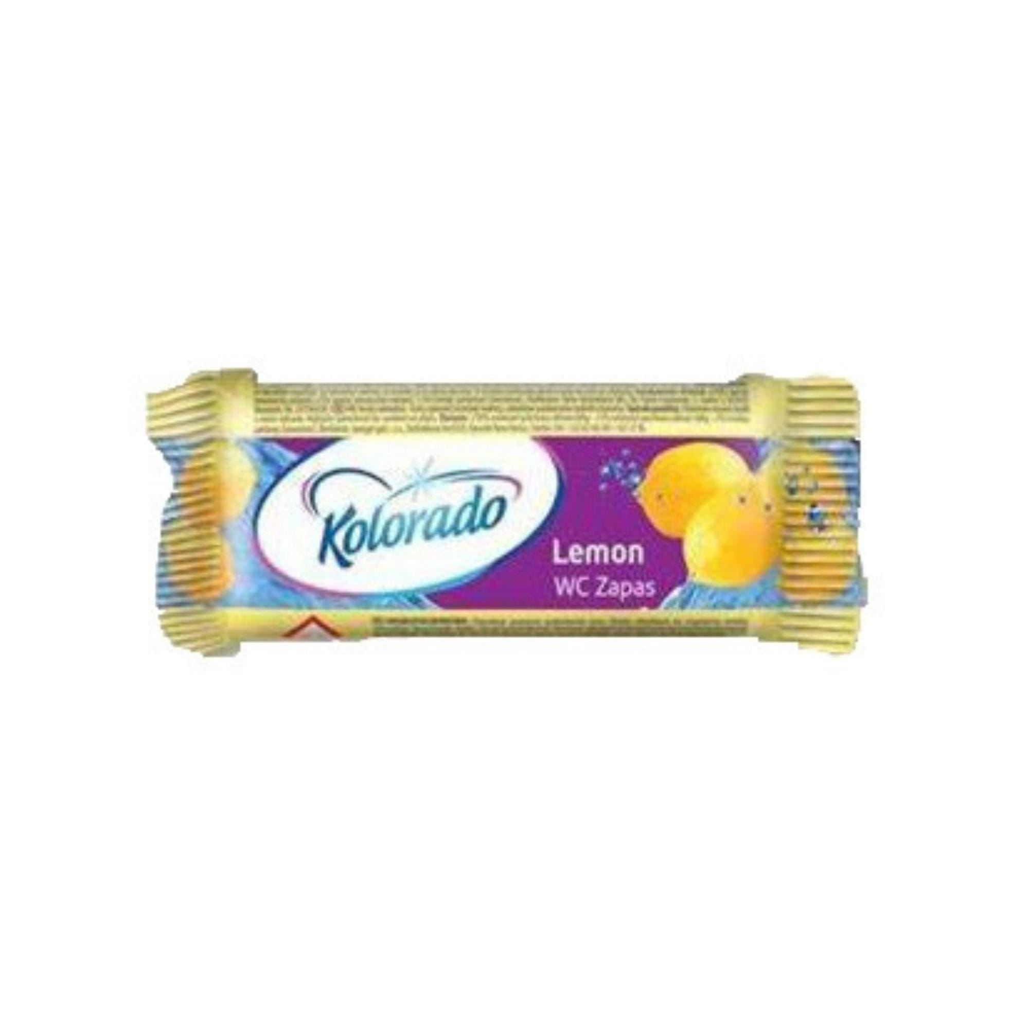 Kostka do WC KOLORADO zapas Cytryna 40g to jednofazowa kostka toaletowa, która zapewnia higieniczną czystość i świeżość w Twojej toalecie. Forma wymiennego zapasu pasuje do wszystkich klasycznych zawieszek toaletowych, co czyni ją niezwykle wygodną i wszechstronną w użyciu.