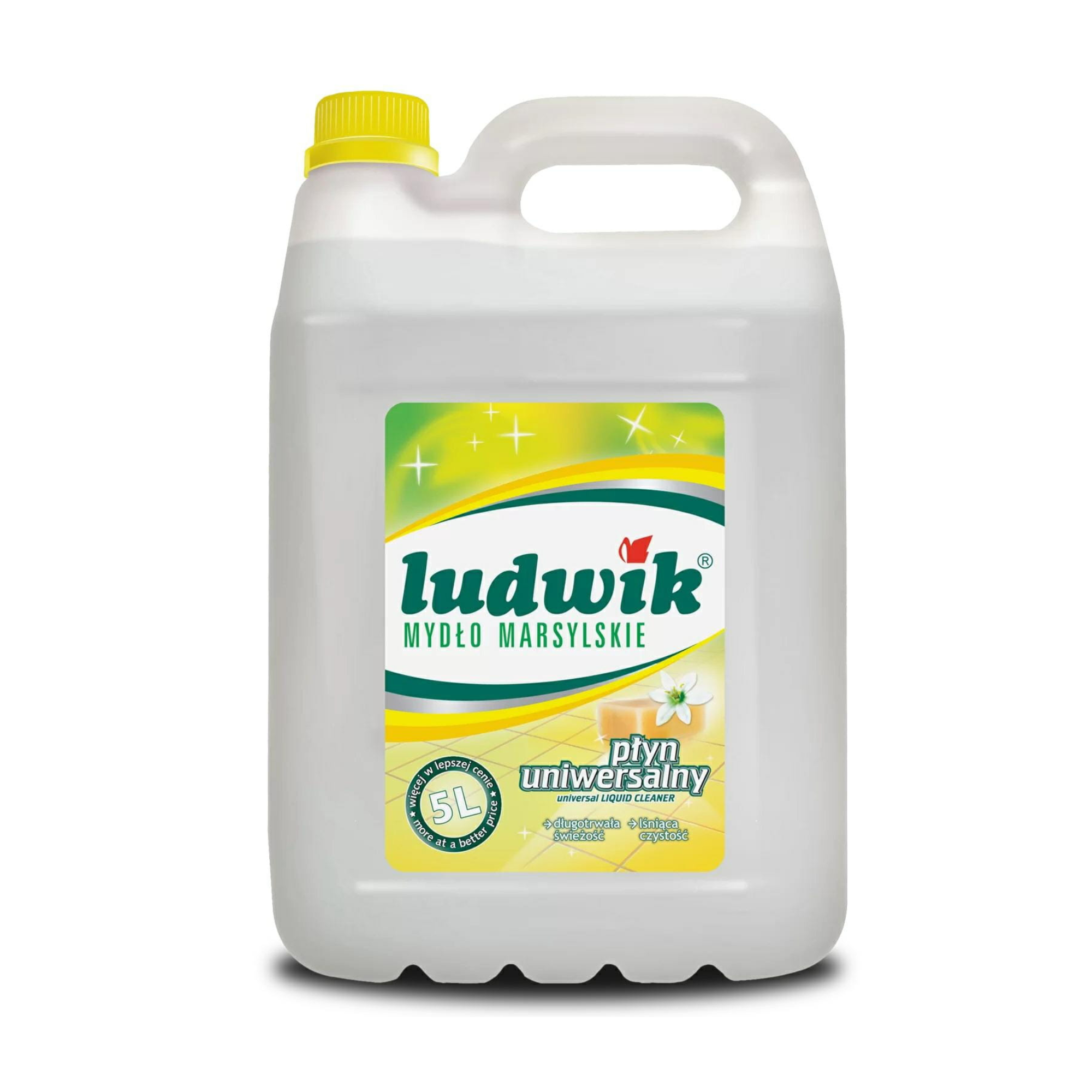 LUDWIK Płyn Uniwersalny 5L Mydło Marsylskie to idealne rozwiązanie dla każdego, kto szuka wydajnego, skutecznego i wszechstronnego środka do codziennego sprzątania, który zapewnia czystość, połysk i przyjemny zapach w każdym pomieszczeniu.