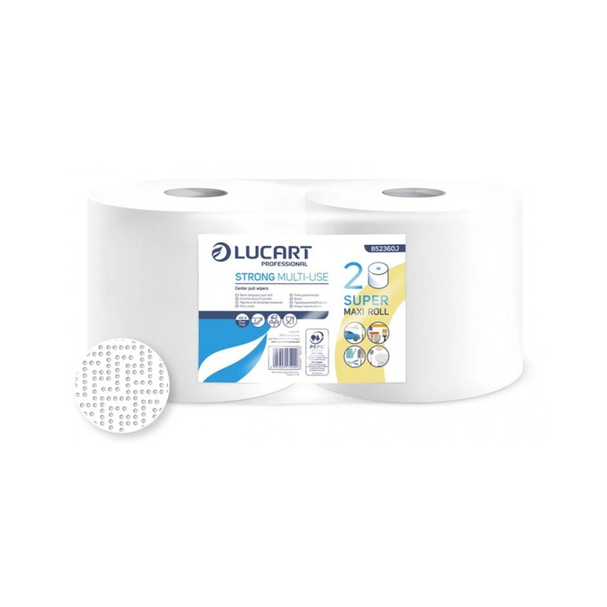 Lucart 852360 to wysokiej jakości czyściwo celulozowe, 2-warstwowe, w praktycznym opakowaniu zawierającym 2 rolki. Każda rolka ma długość 175 m i wysokość 22 cm, co zapewnia dużą wydajność oraz komfort użytkowania. Czyściwo charakteryzuje się wysoką chłonnością i wytrzymałością, dzięki czemu doskonale sprawdza się przy codziennych pracach porządkowych i czyszczeniu różnego rodzaju powierzchni.
