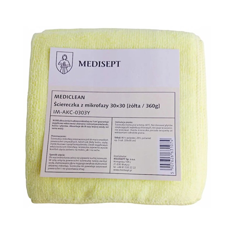 Medisept ścierka z mikrofazy żółta 5 szt 30x30 cm 360 g