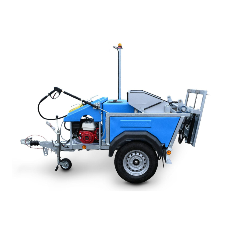 - Kompaktowa konstrukcja: Maszyna jest montowana na ocynkowanej przyczepie, co zapewnia łatwość transportu i użytkowania.