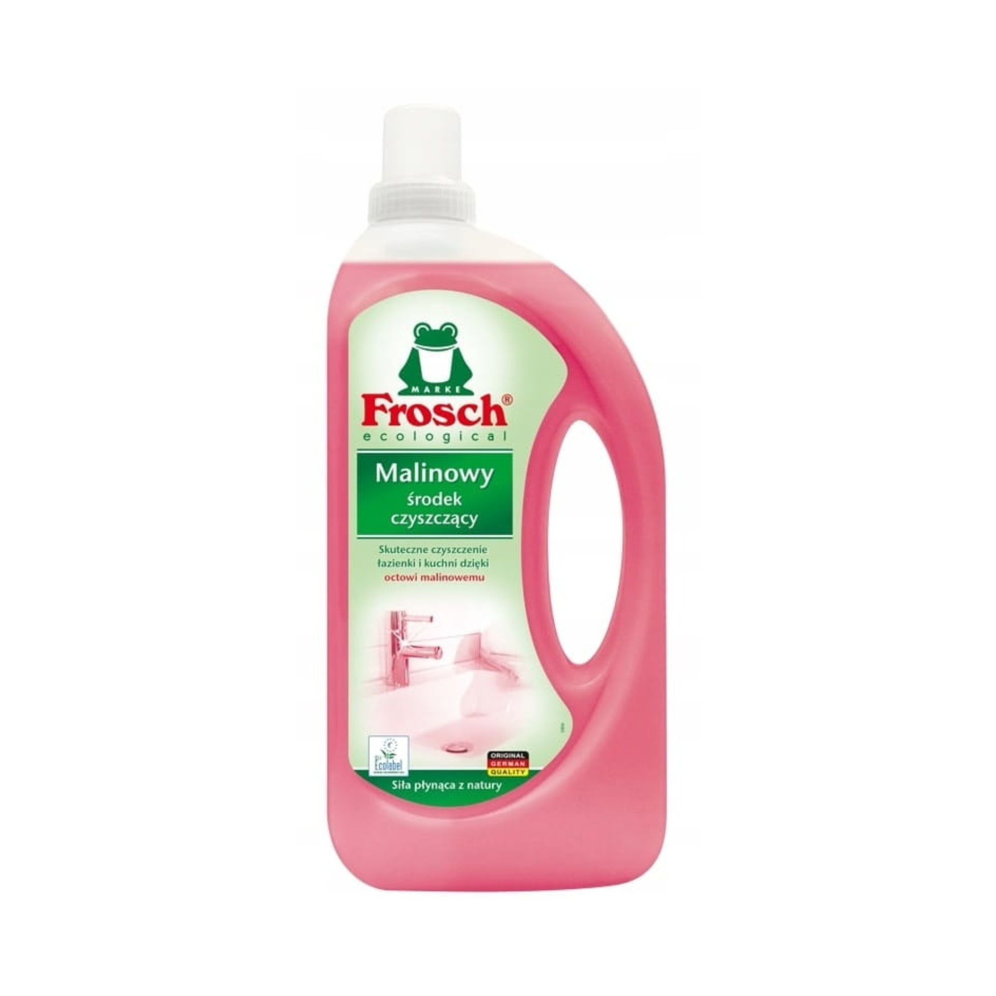 Frosch malinowy środek czyszczący to skuteczne rozwiązanie do czyszczenia łazienki i kuchni dzięki octowi malinowemu. Czyści, usuwa kamień i nadaje trwały blask powierzchniom – można go używać także do płytek podłogowych. Malinowo-octowa formuła usuwa uporczywe osady z kamienia i brudu, plamy z wody i pozostałości mydła, zapewniając połysk bez smug. Pozostawia przyjemny świeży zapach malin.