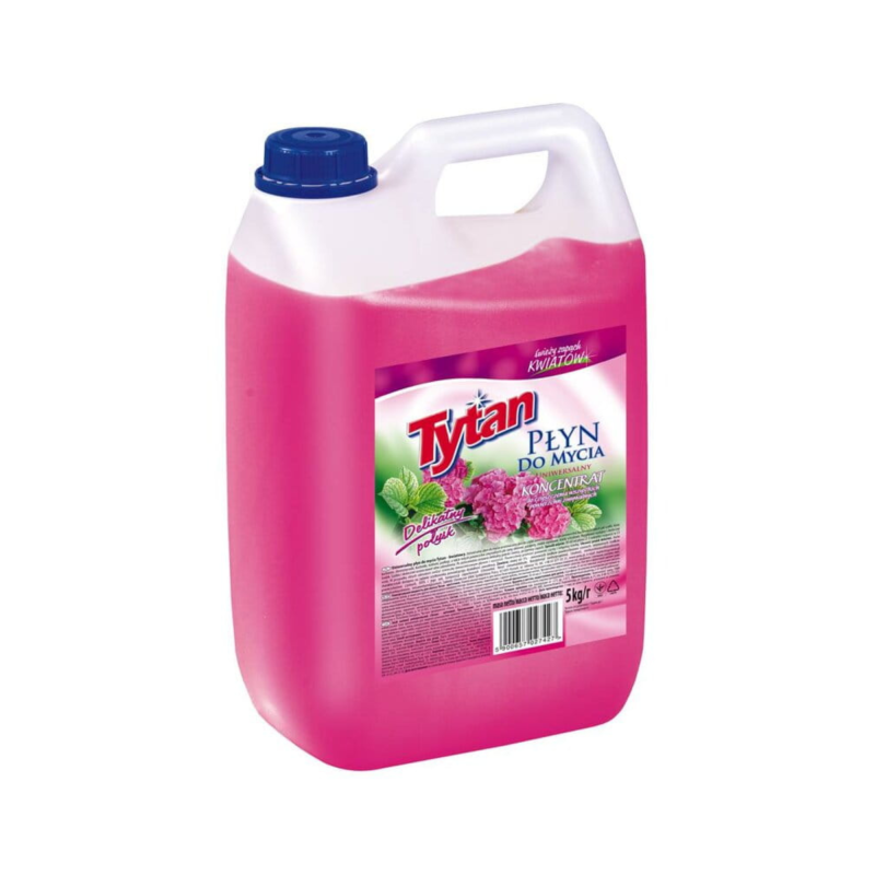 Tytan Płyn uniwersalny 5L Kwiatowy to skuteczny i wszechstronny środek czyszczący, wzbogacony mleczkami do czyszczenia. Dzięki starannie dobranym składnikom, sprzątanie z Tytanem staje się przyjemną chwilą, a jego świeży kwiatowy zapach dodatkowo umila ten proces.