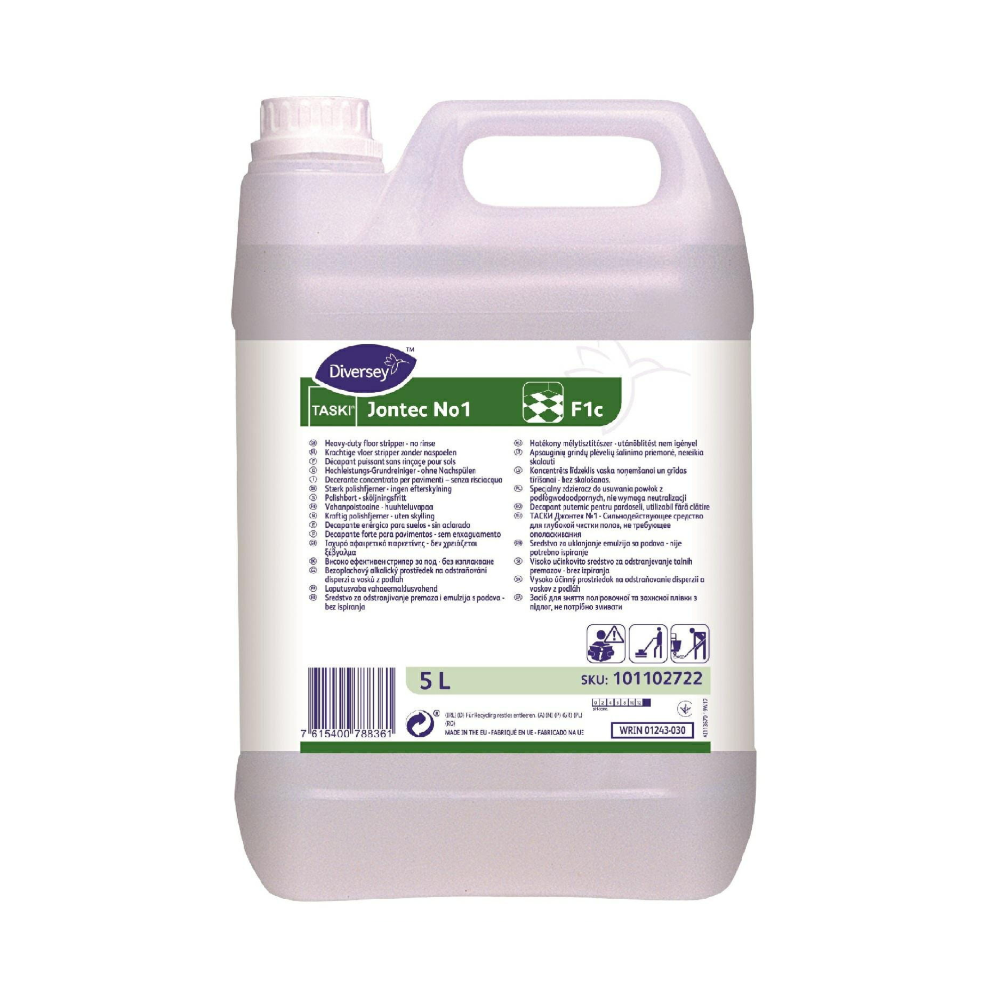 TASKI Jontec No 1 to wysoko alkaliczny preparat przeznaczony do gruntownego czyszczenia podłóg przed nałożeniem nowej powłoki ochronnej. Produkt skutecznie i szybko usuwa stare warstwy powłok polimerowych i woskowych z podłóg odpornych na działanie alkaliów, takich jak PVC. TASKI Jontec No 1 wyróżnia się tym, że nie wymaga neutralizacji, co znacząco skraca czas potrzebny na przygotowanie podłogi do nałożenia nowej powłoki, pozwalając na zaoszczędzenie nawet do 50% czasu pracy.