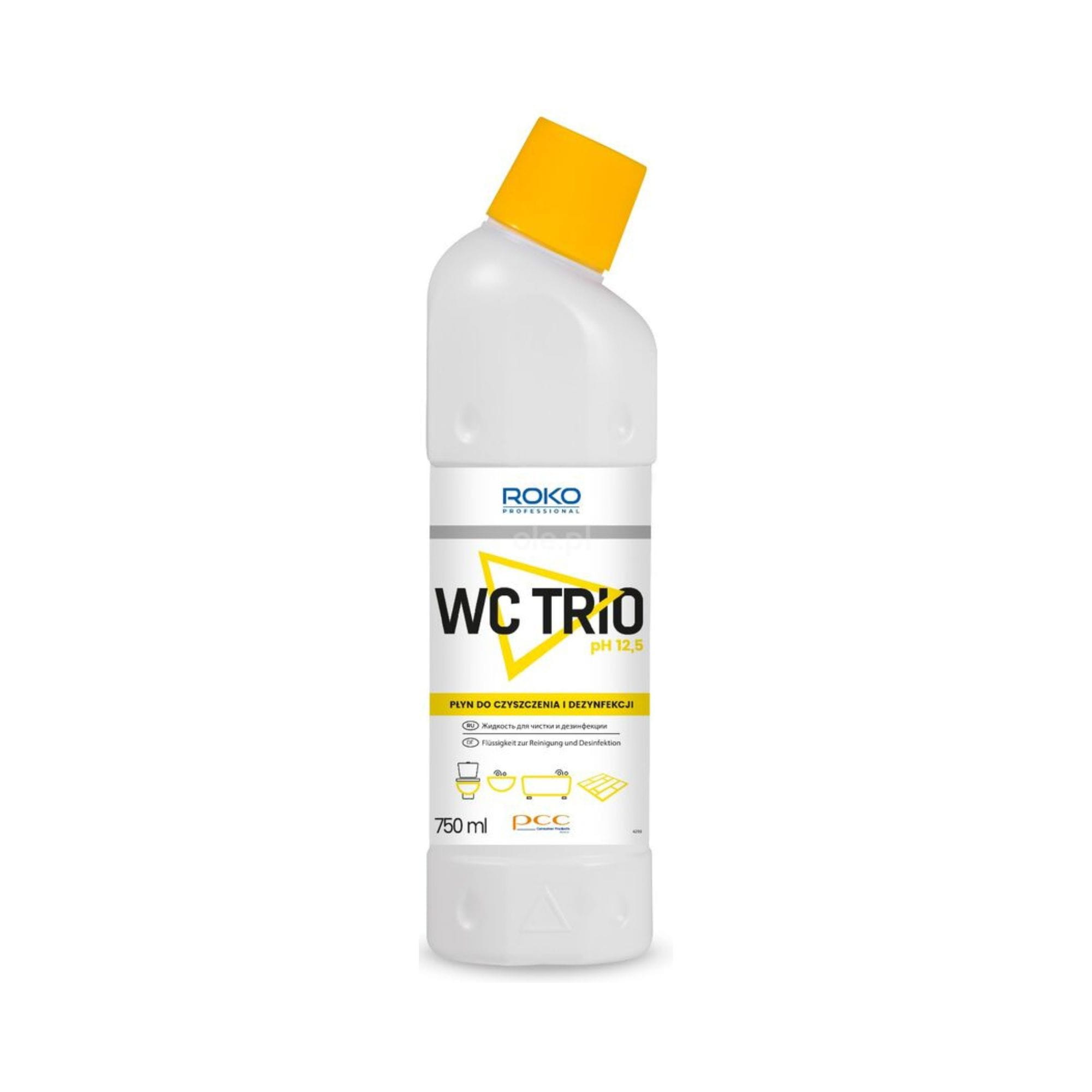 Roko WC Trio 750 ml to skuteczny środek do czyszczenia muszli klozetowych, pisuarów i innych powierzchni sanitarnych. Dzięki specjalnej formule o potrójnym działaniu, preparat zapewnia kompleksową czystość i świeżość w toalecie.