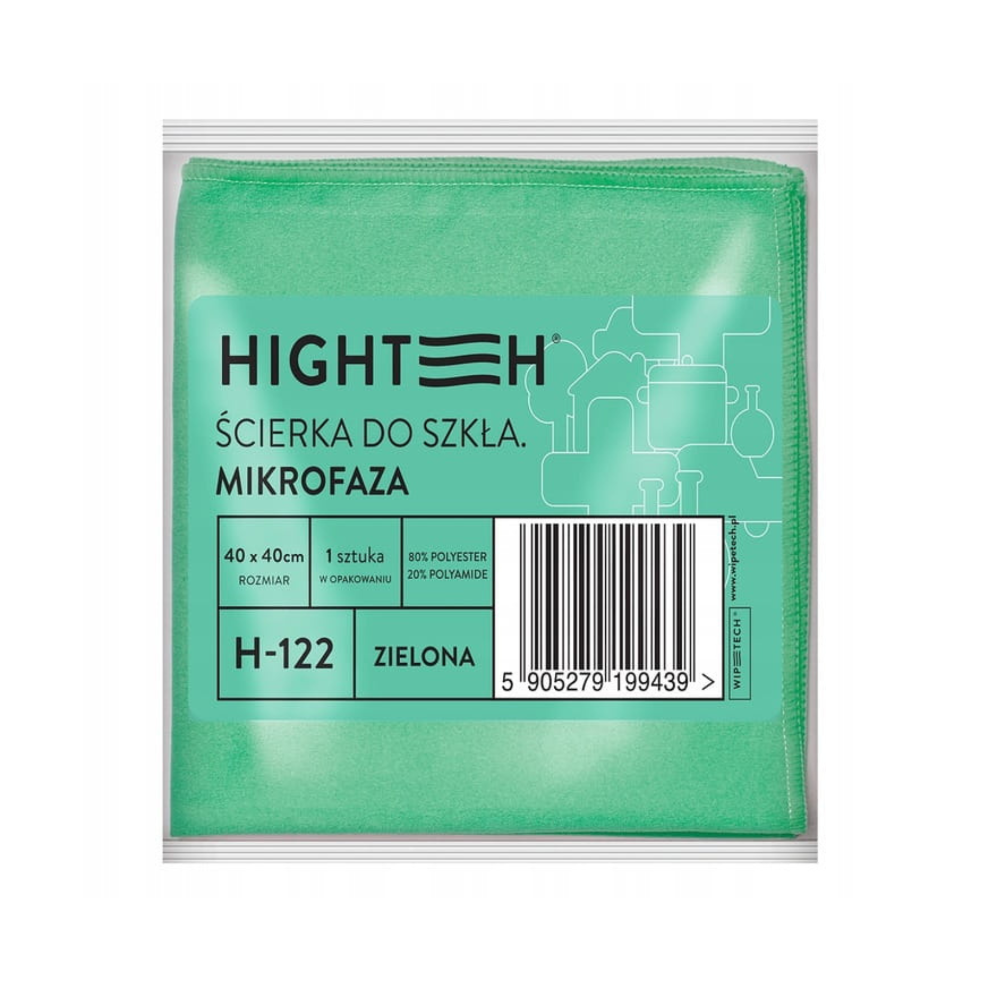 Hightech Ścierka do szkła mikrofaza zielona 40x40 to profesjonalna ściereczka przeznaczona do mycia powierzchni szklanych. Dzięki specjalnej budowie mikrowłókien, ściereczka zapewnia maksymalną skuteczność czyszczenia bez konieczności używania detergentów.