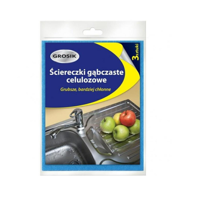 Ściereczki gąbczaste Grosik wykonane z celulozy to praktyczne i wszechstronne narzędzie do utrzymania czystości w każdym domu. Dzięki swojej grubości i wyjątkowej chłonności, idealnie sprawdzają się w codziennych pracach kuchennych i łazienkowych, umożliwiając szybkie i skuteczne czyszczenie.