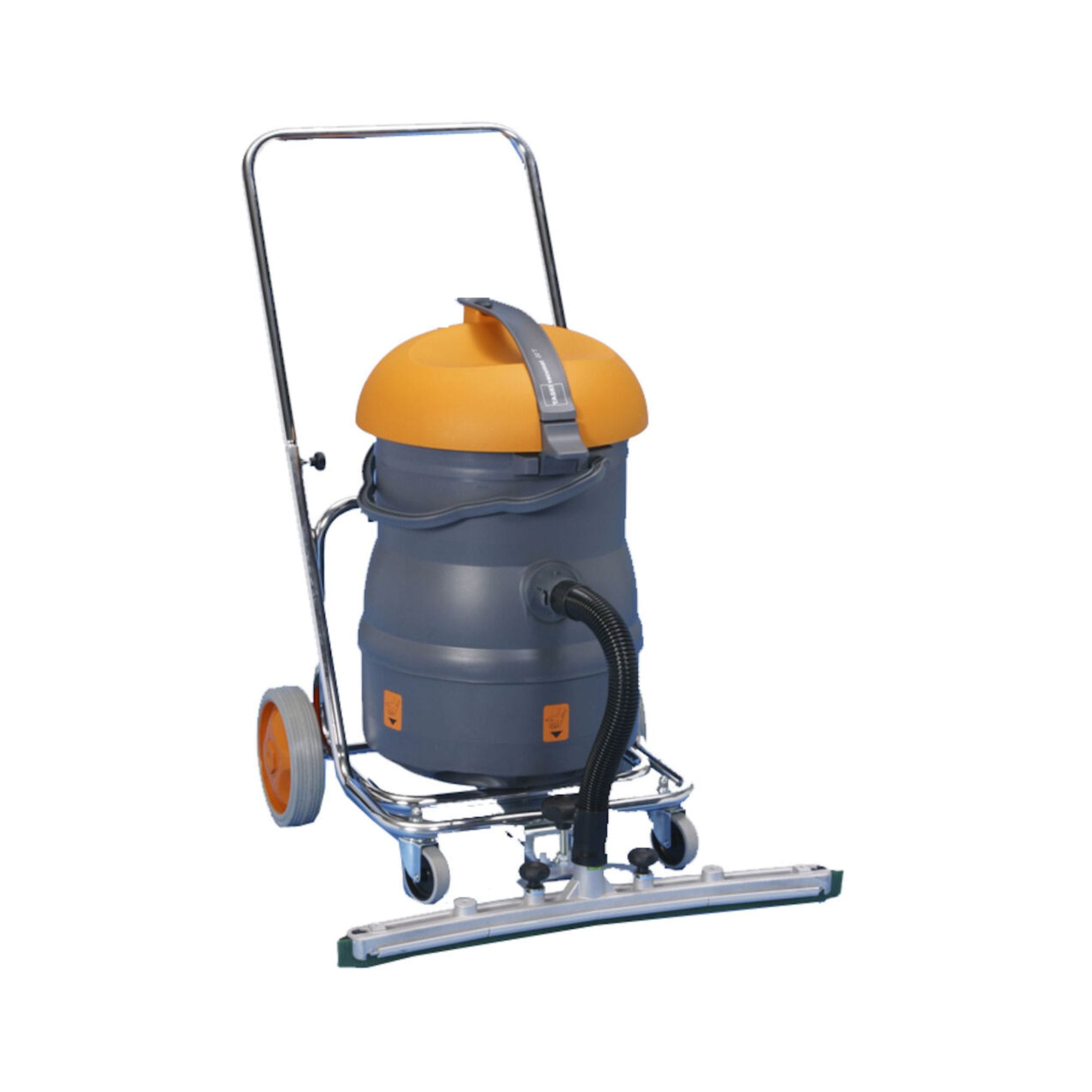 TASKI vacumat 22 T to profesjonalny odkurzacz przemysłowy przystosowany do pracy zarówno na sucho, jak i na mokro. Wyposażony w solidny wózek oraz fixomat – metalową ściągaczkę z gumą, umożliwia skuteczne usuwanie zanieczyszczeń płynnych i suchych z różnych powierzchni. Dzięki pojemnemu zbiornikowi i wytrzymałej konstrukcji, urządzenie jest niezastąpione w codziennym sprzątaniu obiektów użyteczności publicznej, magazynów, warsztatów czy zakładów produkcyjnych.