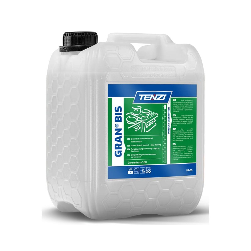 TENZI Gran Bis to niezawodny, profesjonalny preparat czyszczący do gastronomii i przemysłu spożywczego. Gwarantuje skuteczne usuwanie tłuszczu i zabrudzeń organicznych, jednocześnie chroniąc powierzchnie metalowe i zapewniając pełną higienę.